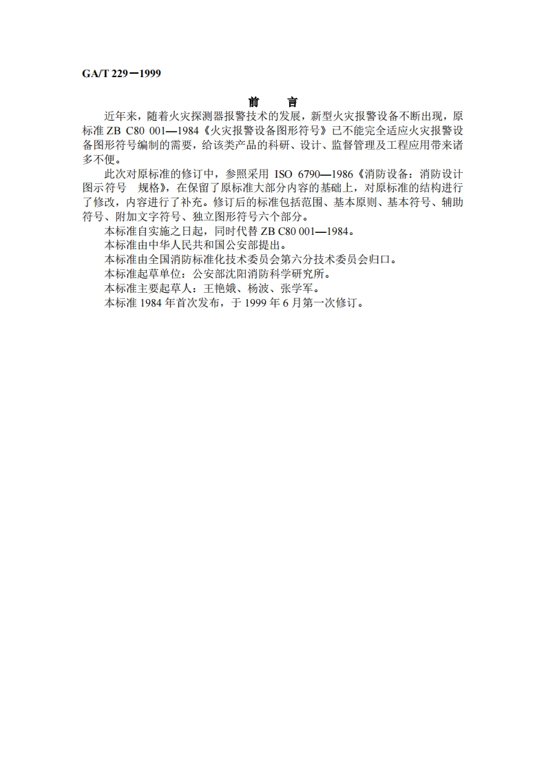 GAT229-1999 火灾报警设备图形符号