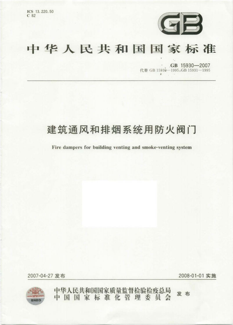 GB15930-2007 建筑通风和排烟系统用防火阀门