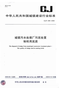 CJT289-2008 城镇污水处理厂污泥处置 制砖用泥质