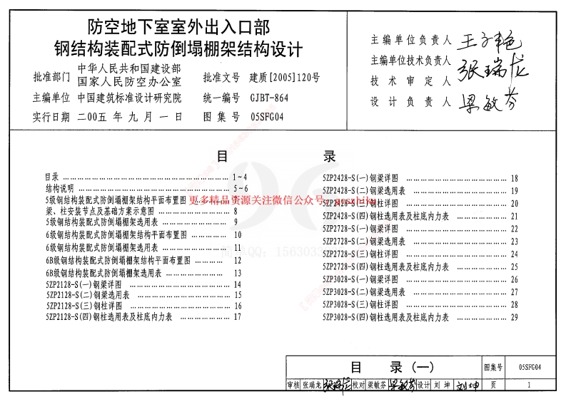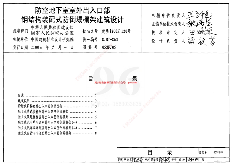 05SFJ05 防空地下室室外出入口部钢结构装配式防倒塌棚架建筑设计