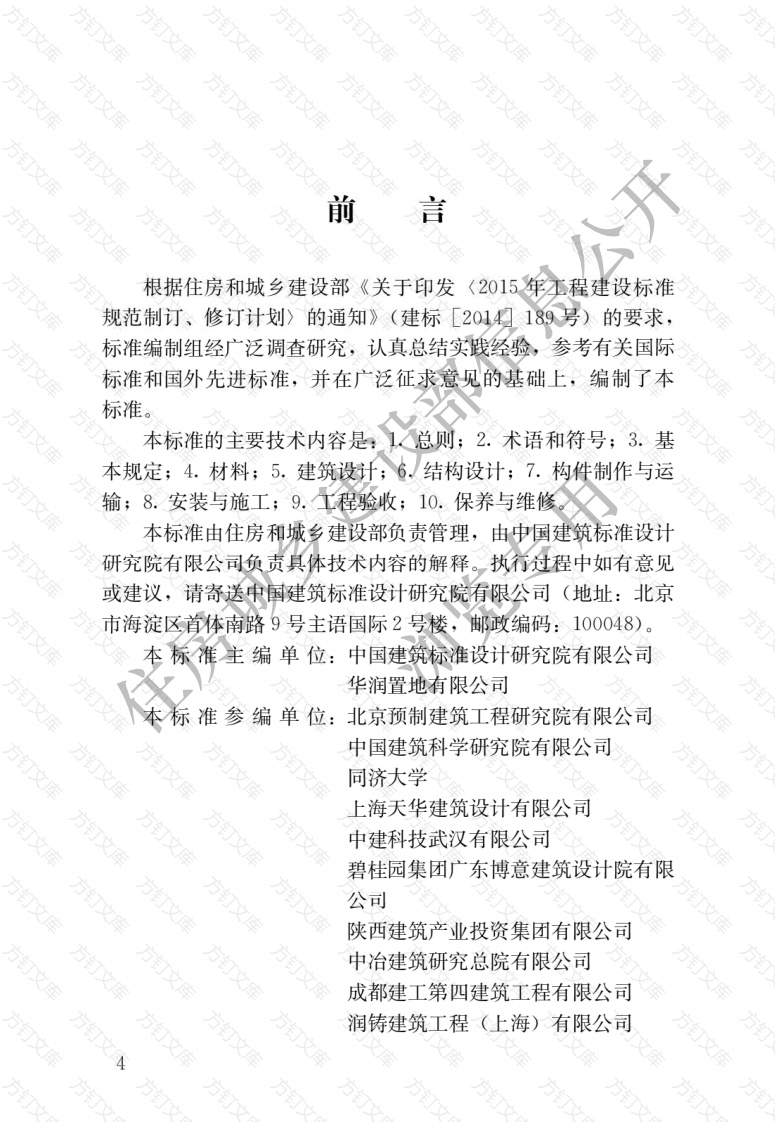 万文前言根据住房和城乡建设部《关于印发(2015年丕程建设标准规范制订、修订计划〉的通知》(建标[2014189号)的要求,标准编制组经广泛调查研究,认真总结实践经验,参考有关国际标准和国外先进标准,并在广泛征求意见的基础上,编制了本标准。本标准的主要技术内容是:1总则;2.术语和符号;3.基本规定;4.材料;5.建筑设计;6.结构设计;7.构件制作与运输;8.安装与施工;9.工程验收;10.保养与维修。本标准由住房和城乡建设部负责管理,由中国建筑标准设计研究院有限公司负责具体技术内容的解释。执行过程中如有意见或建议,请寄送中国建筑标准设计研究院有限公司(地址:北京市海淀区首体南路9号主语国际2号楼,邮政编码:100048)本标准主编单位:中国建筑标准设计研究院有限公司华润置地有限公司准参编单位:北京预制建筑工程研究院有限公司中国建筑科学研究院有限公司同济大学上海天华建筑设计有限公司中建科技武汉有限公司碧桂园集团广东博意建筑设计院有限公司陕西建筑产业投资集团有限公司万中冶建筑研究总院有限公司成都建工第四建筑工程有限公司润铸建筑工程(上海)有限公司上海建工五建集团有限公司方订郑州大学综合设计研究院有限公司西卡(中国)有限公司广州市白云化工实业有限公司广州集泰化工股份有限公司中建二局第三建筑卫程有限公司福建省泷澄建筑工业有限公司金强(福建)建材科技股份有限公司河北晶通建筑科技股份有限公司江苏省苏中建设集团股份有限公司大连建设集团股份有限公司本标准主要起草人员:消明蒋勤俭田春雨杜志杰任彧薛伟辰周晓明赵作周谢旺兰杨思忠顾泰昌樊则森涛朱茜高志强王赞住房城黄远超赵德鹏刘献伟李建新胡翔赵锋苏宝安黄宇奘谷明旺唐雪梅刘明谢惠庆李琰蒋庆李然张宗军任禄朱宏张冠琦郭黎明周祥茵石正金李军吕胜利于秋波姜凯宁良崔国静肖铁威本标准主要审查人员:杨仕超娄宇钱稼茹赵钿张晋勋李晨光赵勇张守峰刘E/方方方方订方万目文次总则2术语和符号2.1术语2.2符号3基本规定材料4.1混凝土、钢筋和钢材4.2预埋件及连接材料4.3拉结件文4.4保温材料4.5防水密封材料建筑设计5.1般规定5.2立面设计115.3构造设计126结构设计166.1般规定166.2作用与作用组合186.3支承系统选型216.4受力分析与变形验算226.5构件设计246.6连接节点设计26构件制作与运输297.1般规定297.2构件制作296