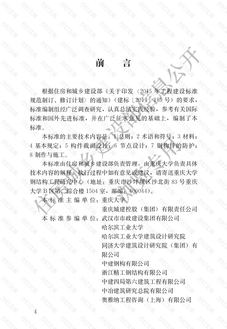 方方前言根据住房和城乡建设部《关于印发〈2015年工程建设标准规范制订、修订计划〉的通知》(建标L2014189号)的要求,标准编制组经广泛调查研究,认真总结实践经验,参考有关国际标准和国外先进标准,并在广泛征求意见的基础上,编制了本本标准的主要技术内容是:1总则;2术语和符号;3材料;基本规定;5构件截面设计:6节点设计;7钢构件的防护;8制作与施工。本标准由住房和城乡建设部负责管理,由重庆大学负责具体技术内容的解释。执行过程中如有意见或建议,请寄送重庆大学钢结构工程研究中心(地址:重庆市沙坪坝区沙北街83号重庆大学B区第二综合楼1504室,邮编:400044)本标准主编单位:重庆大学重庆城建控股(集团)有限责任公司标准参编单位:武汉市市政建设集团有限公司哈尔滨工业大学哈尔滨工业大学建筑设计研究院同济大学建筑设计研究院(集团)有限公司中建钢构有限公司浙江精工钢结构有限公司中建四局第六建筑工程有限公司中冶建筑研究总院有限公司奥雅纳工程咨询(上海)有限公司北京市建筑设计研究院有限公司方方订华东建筑设计研究院有限公司林同棪国际工程咨询有限公司清华大学深圳大学建筑设计研究院深圳市桥博设计研究院有限公司深圳市市政设计研究院有限公司万悉地国际设计顾问有限公司中国建筑设计院有限公司中国建筑西南设计研究院有限公司中南建筑设计院股份有限公司本标准主要起草人员,周绪红刘界鹏张素梅、张小冬王卫永王玉银玉宇航狄谨杨想兵丁洁民杨华陈宜言高勇刚包联进冯远朱立刚刘中华刘安双许庆李霆杨寿忠束伟农肖铭钊郭兰慧樊健生吴兵范重姜瑞娟勇程群主要审查员:李国强刘琼祥白国良陈志华汤启明吴波肖从真肖勇薛尚铃叶浩文余志武方订方方方万方目次万文总则术语和符号2.1术语2.2符号3材料63.1钢材3.2混凝土63.3连接材料6基本规定4.1般规定4.2结构分析与设计原则4.3结构体系设计规定4.4结构构件设计规定05构件截面设计175.般规定175.2正截面轴心受压、受拉承载力计算225.3正截面偏心受压、受拉承载力计算255.4斜截面受剪承载力计算306节点设计…326.1般规定326.2钢管约束钢筋混凝土柱-钢筋混凝土梁框架节点336.3钢管约束型钢混凝土柱-钢筋混凝土梁框架节点386.4钢管约束混凝土柱一钢梁框架节点416.5梁端剪力传递42钢构件的防护44