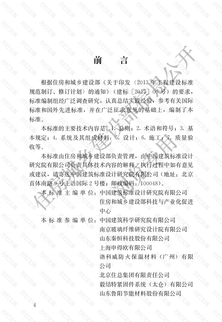 方方万文万前言根据住房和城乡建设部《关于印发2013年玉程建设标准规范制订、修订计划〉的通知》(建标[2013]06号)的要求,标准编制组经广泛调查研究,认真总结实践经验,参考有关国际标准和国外先进标准,并在广泛征求意见的基础上,编制了本标准。本标准的主要技术内容是:2.术语和符号;3.基本规定;4.系统及其组成材料;设计;6.施工质量验收等。本标准由住房和城乡建设部负责管理,由中国建筑标准设计研究院有限公司负责具体技术内容的解释一执行过程中如有意见或建议,请寄送中国建筑标准设计研究院有限公司(地址:北京首体南路9号主语国际2号楼;邮政编码:100048)准主编单位:中国建筑标准设计研究院有限公司住房和城乡建设部科技与产业化促进中心本标准参编单位:中国建筑科学研究院有限公司南京玻璃纤维研究设计院有限公司山东素恒科技股份有限公司上海申得欧有限公司洛科威防火保温材料(广州)有限公司北京住总集团有限责任公司毅结特紧固件系统(太仓)有限公司山东鲁阳节能材料股份有限公司北京金隅节能保温科技有限公司上海新型建材岩棉大丰有限公司苏州大乘环保新材有限公司中国建筑股份有限公司技术中心中国建筑节能协会慧鱼(太仓)建筑锚栓有限公司北京振利节能环保科技股份有限公司方方订南京彤天岩棉有限公司南京恒翔保温材料制造有限公司万钉江苏卧牛山保温防水技术有限公司浙江轩鸣新材料有限公司廊坊富达新型建材有限公司欧文斯科宁(中国)投资有限公司立邦涂料(中国)有限公司住房城乡上海建科检验有限公司北京建筑材料科学研究总院有限公司山东古云阳光岩棉集团有限公司瓦克化学(中国)有限公司北新集团建材股份有限公司北京北鹏首豪建材集团有限公司亚士创能科技(上海)股份有限公司本标准主要起草人员:李晓明杨西伟周辉王玉梅王玉芝张碧茹孙立新徐洪涛鲍娜郭景钱选青唐健胡小媛蒋涛鹿俊华孙建方铭邱峰陈惠俊黄凯万万文汪丽婷◇陈凯熊少波张树君李鹏吕大鹏高永强张智吴永文周徐路国忠陈希朝段瑜芳杜选东刘印楼高国友本标准主要审查人员:王庆生栾景阳冯雅张张前国鲍宇清李德荣黄鹏住房城乡建设部信息许锦峰浏览专用钉方钉万文