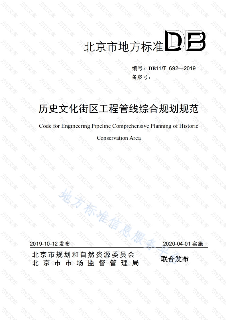首页地方标准北京DB11T 692-2019 历史文化街区工程管线综合规划规范