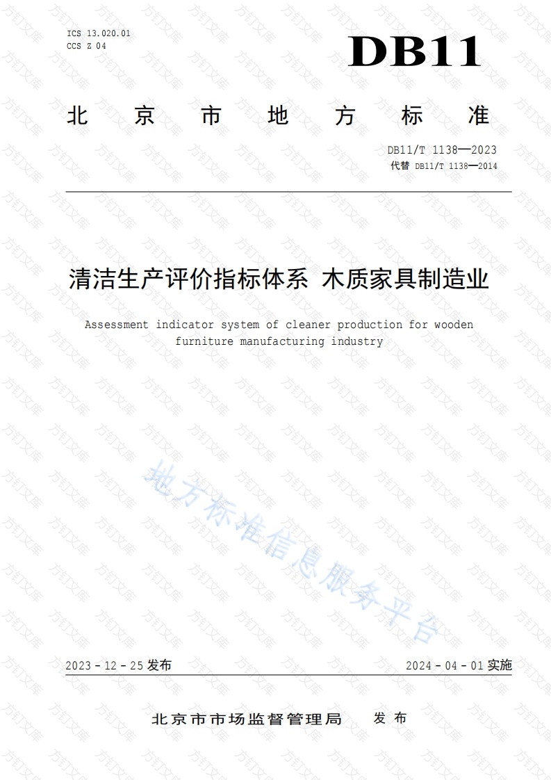 首页地方标准北京DB11T 1138-2023 清洁生产评价指标体系 木质家具制造业