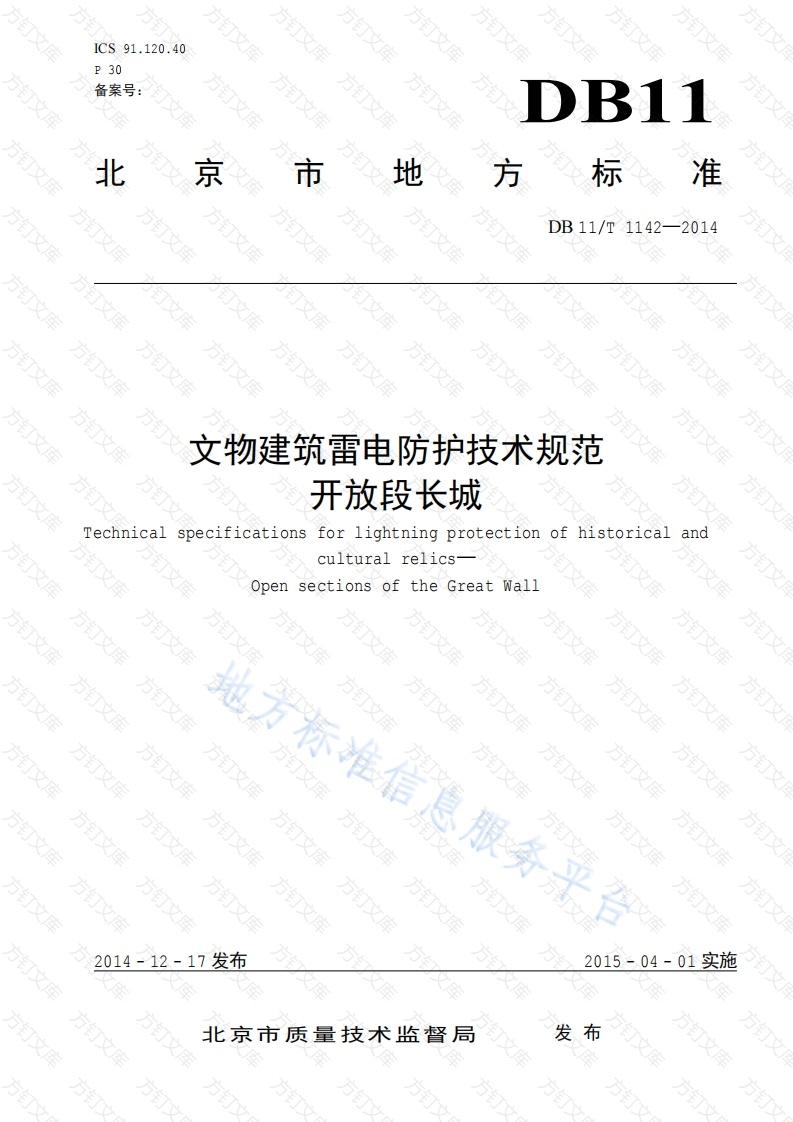 首页地方标准北京DB11T 1142-2014 文物建筑雷电防护技术规范 开放段长城
