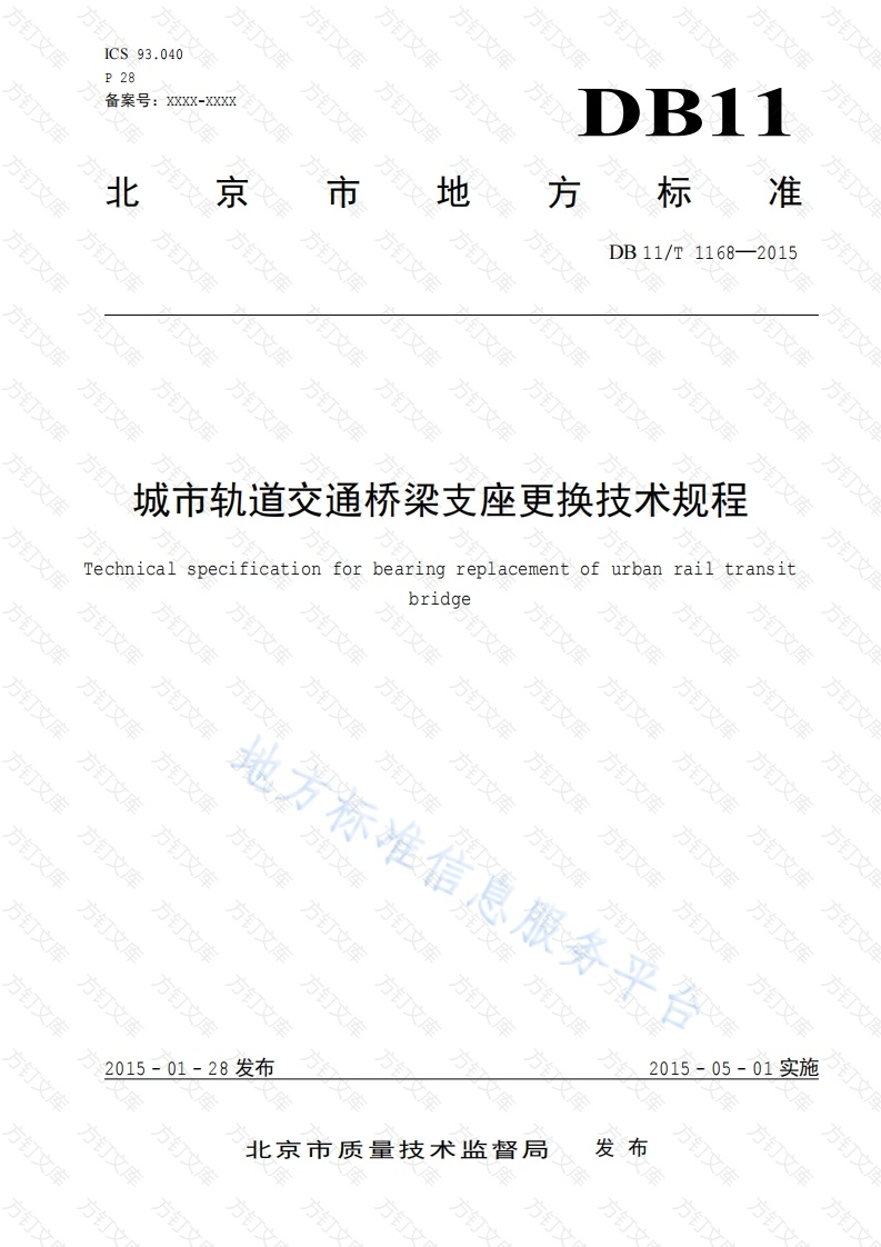首页地方标准北京DB11T 1168-2015 城市轨道交通桥梁支座更换技术规程