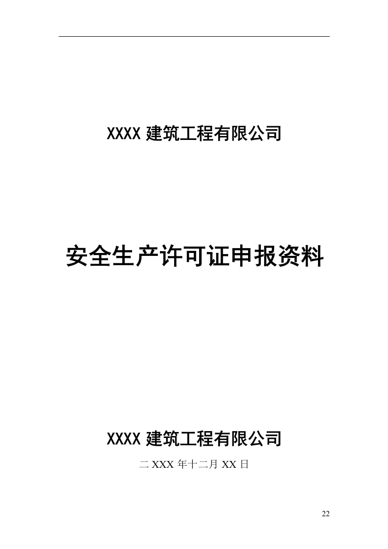 XXXX建筑工程有限公司安全生产许可证申报资料XXXX建筑工程有限公司二XXX年十二月XX日22目录第一项建筑工程企业安全生产许可证申请表第二项企业法人营业执照第三项安全生产管理制度公司安全生产责任制度安全教育培训制度安全检查制度安全生产事故报告处理制度安全操作规程第四项安全生产资金保障制度项目安全生产措施费计划表第五项安全生产管理机构企业安全生产保证体系安全生产管理机构设置文件专职安全管理人员配置规定安全管理机构负责人任命书23第六项安全培训计划及考核2xxx年度安全培训计划管理人员和作业人员考核情况汇总表第七项建筑工程人身意外伤害保险凭证(复印件)第八项塔式起重机检测第九项职业病危害防治措施第十项危险性较大分部分项工程及施工现场易发生重大事故的部位、环节的预防监控措施和应急预案第十一项生产安全事故应急救援预案24