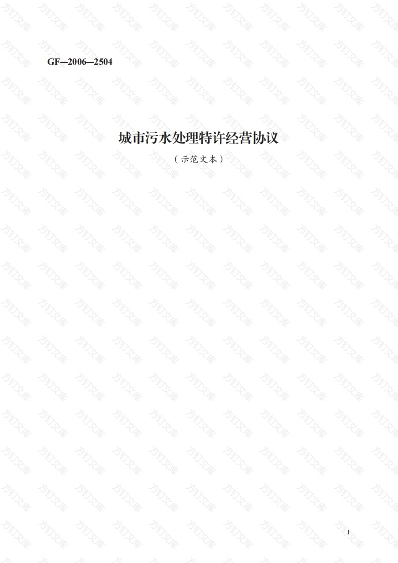 2006-2504方城市污水处理特许经营协议方方方示范文本)方方方方方方方方方方方万万城市污水处理特许经营协议示范文本说明本协议示范文本依据国家有关法律法规,以及建设部《关于加快市政公用行业市场化进程的意见》(建城[2002272号入、《市政公用事业特许经营管理办法》(建设部令第126号)和《关于加强市政公用事业监管的意见》(建城2005154号)编制。本协议示范文本主要用于污水处理特许经营项目,如B0T(建设一运营-移交),TOT(转让经营权)等形式。其他形式如股权转让等可参照本示范文本。本协议示范文本作为各省(自治区)、直辖市、市(县)等实施污水处理特许经营过程中签订特许经营协议的示范性文件。鉴于项目的具体情况各有不同,各地在参照使用本协议示范文本时,应根据实际情况对本示范文本的相应条款加以细化和补充。本协议的所有附件应由项目执行机构根据项目的实际情况制定。方万万万万文方第一章总则第二章术语定义万第1条术语定义1.1术语定义方12其他第三章特许经营权第2条特许经营权方2.1特许经营权22特许经营期第3条声明和条件方3.1甲方的声明3.2乙方的声明3.3履约保函(BOT形式适用)3.4融资完成3.5甲方的权利和义务3.6乙方的权利和义务第四章项目建设(BOT形式适用)第4条土地使用4.1土地使用权4.2对使用土地的限制方第5条设计设计要求52审阅设计标准和技术规范方53施工图设计5.4甲方的责任方第6条建设6.1乙方的主要义务6.2甲方的主要义务6.3质量保证和质量控制6.4项目进度计划65进度报告万万万文