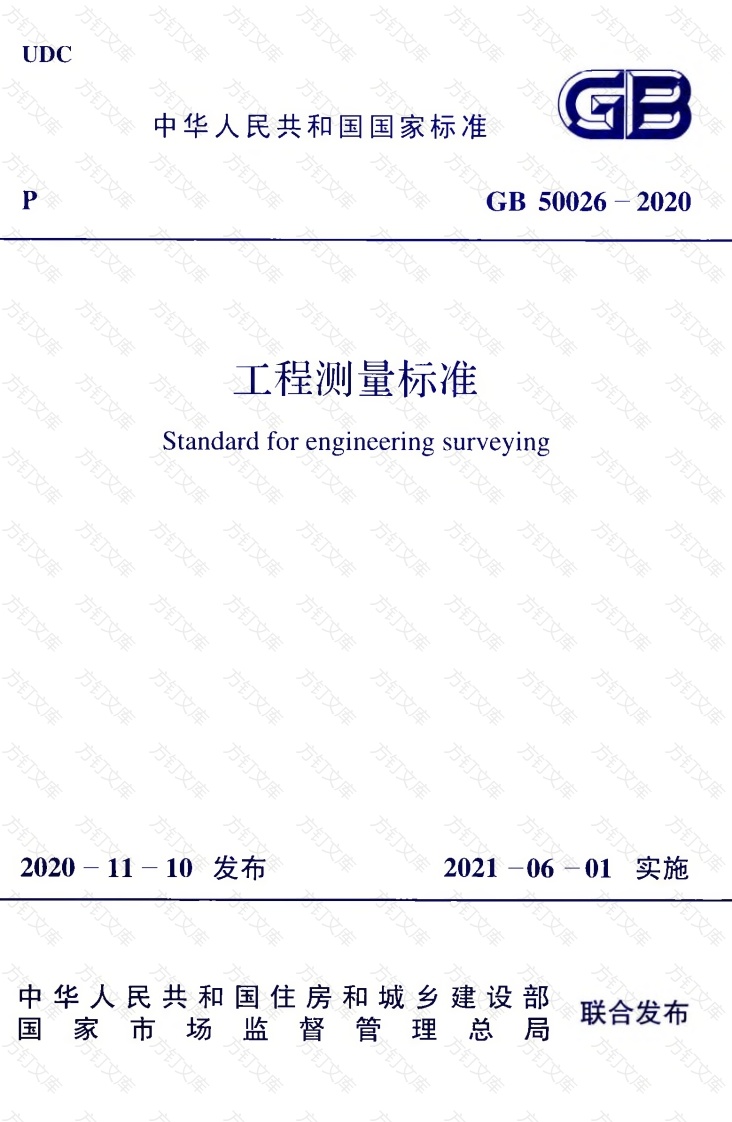 UDC中华人民共和国国家标准PGB50026-2020方方工程测量标准Standard for engineering surveying万方文方订2020-11-10发布2021-06-01实施中华人民共和国住房和城乡建设部国家市场监督管理、总局联合发布方中华人民共和国国家标准工程测量标准Standard for engineering surveyingGB50026-2020主编部门:中国有色金属工业协会批准部门:中华人民共和国住房和城乡建设部施行日期:2021年6月1日中国计划出版社2020北京方方方中华人民共和国国家标准工程测量标准GB50026-2020☆中国计划出版社出版发行网址:www.jhpress.corm地址:北京市西城区木樨地北里甲11号国宏大厦C座3层邮政编码:100038电话:(010)63906433(发行部)三河富华印刷包装有限公司印刷850mm×1168mm1/3211.75印张299千字2021年2月第1版2021年2月第1次印刷☆万文统一书号:155182·0701定价:118.00元万文版权所有侵权必究侵权举报电话:(010)63906404如有印装质量问题,请寄本社出版部调换万文