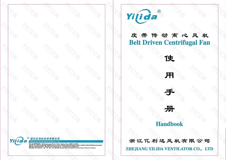 钉Yilid皮带传动离心风机Belt Driven Centrifugal Fan库使文用库册Handbook浙江亿利达风机有限公司ZHEJIANG YILIDA VENTILATOR CO.,LTDYilidYiliNote:The beit should be released if the does not run in a long time,and when the fan is to搬运、储存和防护方风机在出厂前已经过出厂检验合格并进行符合防护要求的包装。风机运输、装如和铭存风机应通过套在风机粗架四周的悦绳来吊装搬运,在吊装过程中如风机外壳表面擦伤应二、开机前检查步骤在风机首次投入使用前,必须道守木操作说明书所述内容,在完成下列步露后,风机才3、确保基座安装和管道联接在设计上完全符合工程惯例及厂商推荐内容:8、检查皮带轮是否对直,并采用厂家在荐的张景力:A2014请仔细检查以下儿项:大、BEARING LUBRICATION(5)皮带、皮带轮运转是否平稳,在确认以上检查无误后可以运行风机,但在首次运行的八小时内,应对风机的振动和噪出生产商推荐的范围。运行八小时后,夜关机并检查以下事项:12Yilid万Yilid(2》大小皮带轮的平面直线度有无变化:四、V-BELT DRIVE INSTALLATION(3》皮墙:动张紧度有无变化:三、风机安装指南35m/s (25-35m/s):皮毒传动离心风机安装时进出风管路安装不当会引起风机性能降低。进风口处受限加和五,BELT TENSIONIf a beit-tensioning gauge is not available,then the belt should be tightened jast enough so that theAfter tensioning the belt and before starting the ventilator,check to make sure that thepulley are proper aligned.Realign the pulley if necessary.Note that the new belts maystretch a little during initial use,so the belt tension level should be checked again after a
