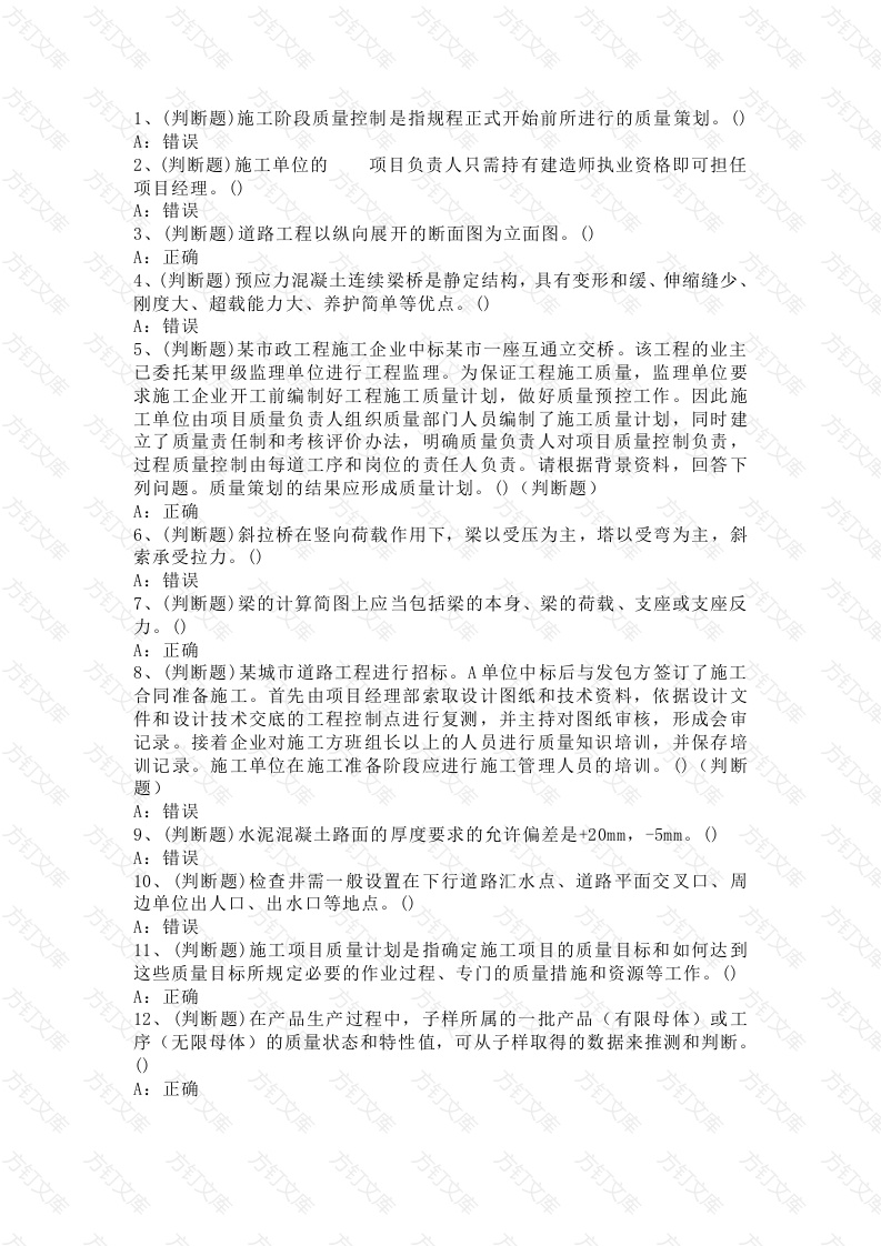 建筑行业市政质量员模拟考试第51份试卷含解析