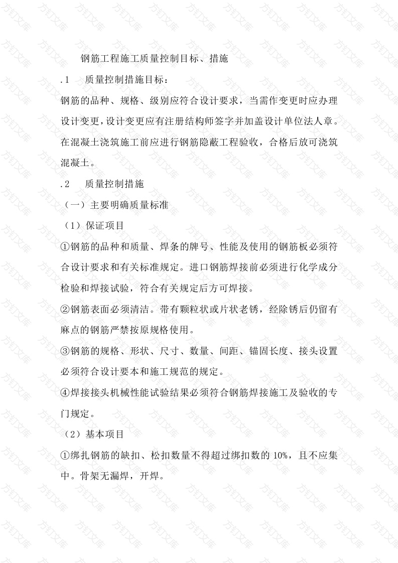 钢筋工程施工质量控制目标、措施