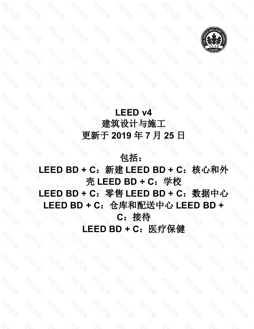 LEED v4建筑设计与施工文更新于2019年7月25包括:LEEDBD+C:新建LEED BD+C:核心和外壳LEED BD+C:学校LEED BD+C:零售LEED BD+C:数据中心LEED BD+C:仓库和配送中心LEED BD+C:接待LEED BD+C:医疗保健方万方INTEGRATIVE PROCESS8Prerequisite:Integrative Project Planning and DesignHealthcare…8Credit:Integrative Process..9NC,CS,Schools,Retail,Data Centers,Warehouses Distribution Centers,Hospitality,Healthcare9LOCATION AND TRANSPORATION (LT)......................................LT Credit:LEED for Neigh borhood Development Location.......NC,CS,Schools,Retail,Data Centers,Warehouses Distribution Centers,Hospitality,Healthcare.11LT Credit:Sensitive Land Protection...12方NC,CS,Schools,Retail,Data Centers,Warehouses Distribution Centers,Hospitality,Healthcare.12LT Credit:High-Priority Site.......NC,CS,Schools,Retail,Data Centers,Warehouses Distribution Centers,Hospitality,Healthcare.14LT Credit:Surrounding Density and Diverse Uses....15NC,CS,Schools,Retail,Data Centers,Hospitality.15Warehouses Distribution Centers.16Healthcare.…LT Credit:Access to Quality Transit.......NC,CS,Data Centers,Warehouses Distribution Centers,Hospitality,Retail.18Schools.......19Healthcare.20LT Credit:Bicycle Facilities......1NC,CS,Data Centers,Warehouses Distribution Centers,Hospitality.2122Retail.…2Healthcare..23LT Credit:Reduced Parking Footprint.......25万NC,CS,Retail,Schools,Data Centers,Warehouses Distribution Centers,Hospitality,Healthcare25LT Credit:Green Vehicles......27NC,CS,Data Centers,Hospitality.Retail,Healthcare.28Warehouses Distribution Centers2SUSTAINABLE SITES(SS)..30万文SS Prerequisite:Construction Activity Pollution Prevention..........30NC,CS,Schools,Retail,Data Centers,Warehouses Distribution Centers,Hospitality,Healthcare万文SS Prerequisite:Environmental Site Assessment...31Updated to reflect the July 25,2019 LEED v4 Building Design and Construction AddendaSchools,HealthcareSS Credit:Site Assessment..32NC,CS,Schools,Retail,Data Centers,Warehouses Distribution Centers,Hospitality,Healthcare32SS Credit:Site Development-Protect or Restore Habitat......33NC,CS,Schools,Retail,Data Centers,Warehouses Distribution Centers,Hospitality,Healthcare万33SS Credit:Open Space....NC,CS,Schools,Retail,Data Centers,Warehouses Distribution Centers,Hospitality,Healthcare35SS Credit:Rainwater Management.................NC,CS,Schools,Retail,Data Centers,Warehouses Distribution Centers,Hospitality,Healthcare36SS Credit:Heat Island Reduction.38NC,CS,Schools,Retail,Data Centers,Warehouses Distribution Centers,Hospitality,Healthcare38SS Credit:Light Pollution Reduction....40NC,CS,Schools,Retail,Data Centers,Warehouses Distribution Centers,Hospitality,Healthcare.......0......SS Credit:Site Master Plan...44Schools....44SS Credit:Tenant Design and Construction Guidelines45CS45万文SS Credit:Places of Respite.46Healthcare.…46SS Credit:Direct Exterior Access47Healthcare....47SS Credit:Joint Use of Facilities.48Schools.48WATER EFFICIENCY WE)....50WE Prerequisite:Outdoor Water Use Reduction....50NC,CS,Schools,Retail,Data Centers,Warehouses Distribution Centers,Hospitality,Healthcare50WE Prerequisite:Indoor Water Use Reduction......NC,CS,Schools,NC-Retail,Data Centers,Warehouses Distribution Centers,NC-Hospitality,Healthcare.......51WE Prerequisite:Building-Level Water Metering....54NC,CS,Schools,Retail,Data Centers,Warehouses Distribution Centers,Hospitality,Healthcare54WE Credit:Outdoor Water Use Reduction..55Updated to reflect the July 25,2019 LEED v4 Building Design and Construction Addenda万