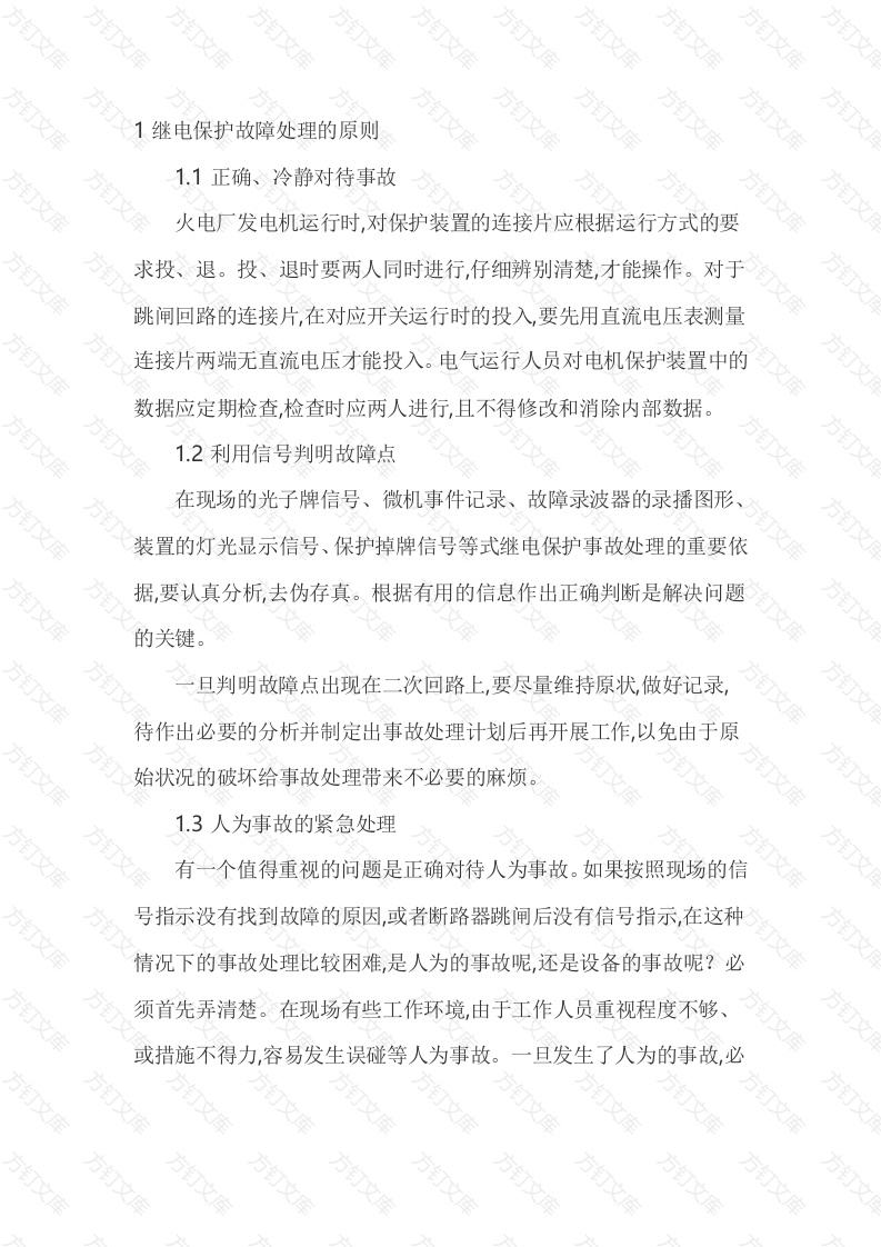 继电保护故障处理的原则1.1正确、冷静对待事故火电厂发电机运行时,对保护装置的连接片应根据运行方式的要求投、退。投、退时要两人同时进行,仔细辨别清楚,才能操作。对于跳闸回路的连接片,在对应开关运行时的投入,要先用直流电压表测量连接片两端无直流电压才能投入。电气运行人员对电机保护装置中的数据应定期检查,检查时应两人进行,且不得修改和消除内部数据。1.2利用信号判明故障点在现场的光子牌信号、微机事件记录、故障录波器的录播图形装置的灯光显示信号、保护掉牌信号等式继电保护事故处理的重要依据,要认真分析,去伪存真。根据有用的信息作出正确判断是解决问题的关键日判明故障点出现在二次回路上,要尽量维持原状,做好记录,待作出必要的分析并制定出事故处理计划后再开展工作,以免由于原始状况的破坏给事故处理带来不必要的麻烦。1.3人为事故的紧急处理有一个值得重视的问题是正确对待人为事故。如果按照现场的信号指示没有找到故障的原因,或者断路器跳闸后没有信号指示,在这种情况下的事故处理比较困难,是人为的事故呢,还是设备的事故呢?必须首先弄清楚。在现场有些工作环境,由于工作人员重视程度不够、或措施不得力,容易发生误碰等人为事故。旦发生了人为的事故,必须如实地反应,以便分析,同时要引以为戒防止此类似事件的再次发生2小电流接地系统故障处理小电流接地系统发生单相接地故障时,流过故障点的电流不大,但允许系统带着单相接地故障点继续运行,一般可以允许运行两小时。在这段时间内,变电站值班员必须要去找出故障线路,转移负荷,将故障线路停下来。小电流系统一条线路发生单相接地,虽然线路中零序电流非常小,断线信号继电器也不会动作,线路仍可以继续运行,但是,在处理过程中另一线路异名相发生不同点接地故障时,每条故障线都流过大小相等方向相反的零序电流,而且该零序电流数值就非常可观,线路保护必须动作跳闸,可是断线闭锁信号继电器因有零序电流亦动作,将保护闭锁而不能跳闸,这是线路保护没有跳开断路器的原因。处理措施是:对于线路保护(纵差保护除外),若采用电流互感器次断线闭锁,采用线路两组电流互感器的零序电流构成与门,是线路保护用电流互感器零序地阿牛,而是线路非本保护的电流互感器零序电流。条件是线路保护要有两组电流互感器。这种动作原理的交流电流断线闭锁装置才真正解决问题。36kV电动机启动时零序保护误动作发电厂的6kV电动机在启动过程中存在有零序保护误动作的现象,其中误动问题比较突出的有引风机、送风机、磨煤机、一次风机、给水泵等电动机的零序保护。故障的检查过程如下3.1对称短路时TA的二次负载当一次系统发生对称短路时,TA二次侧的三相电流也是对称的,其中、、为二次各相负载,为零序保护阻抗各相TA二次阻抗分别为,若TA二次的各相负载或阻抗相等,即,则上述各式写成普通表达式3.2相间短路时TA的二次负载设一次系统发生U八V相间短路,则三相TA的二次侧也不对称,这时,两相TA二次阻抗分别为,若TA二次的各相负载阻抗相等,即,则上述各式写成普通的表达式。3.3单相接地短路时的二次负载设U相发生接地短路,三相TA的二次只有单相电流,这时,U相TA二次阻抗为,若TA的二次的各相负载阻抗相等,则上式可以写为普通表达式。由此可见当单相短路时,TA的二次负载阻抗为最大。因此,TA负载能的确定应满足单相短路时的要求为依据。故障的处理:(1)在电动机侧另装一组零序TA:在电动机侧另装组零序TA,即可解决零序保护启动过程中误动的问题。(2)更换TA:更换TA,改选具有两组二次绕组的TA,用于保护的一组应满足在短路情况下二次电流的误差小于10%的要求。(3)零序保护加装连接片:零序保护加装连接片,在启动过程中暂时将另需保护退出运行,等启动完毕再投入4500kV线路CVT小开关误动跳闸万万万