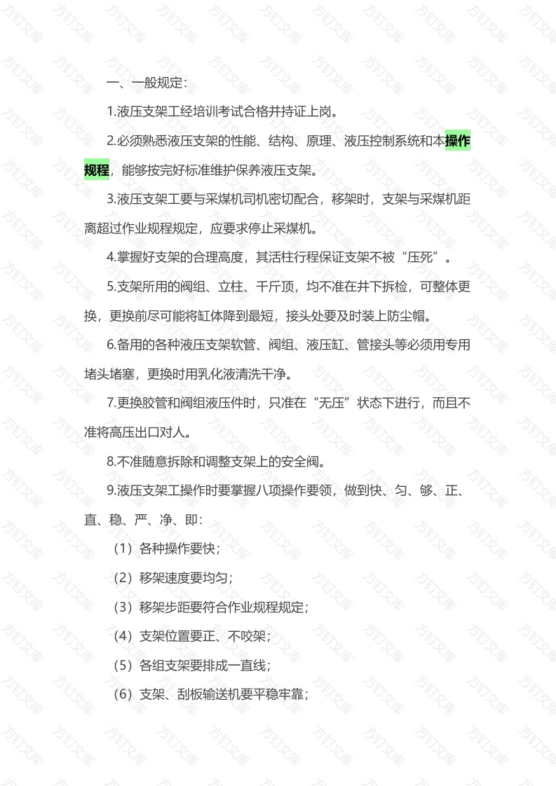 首页公共专业安全煤矿安全培训资料:液压支架操作工操作规程