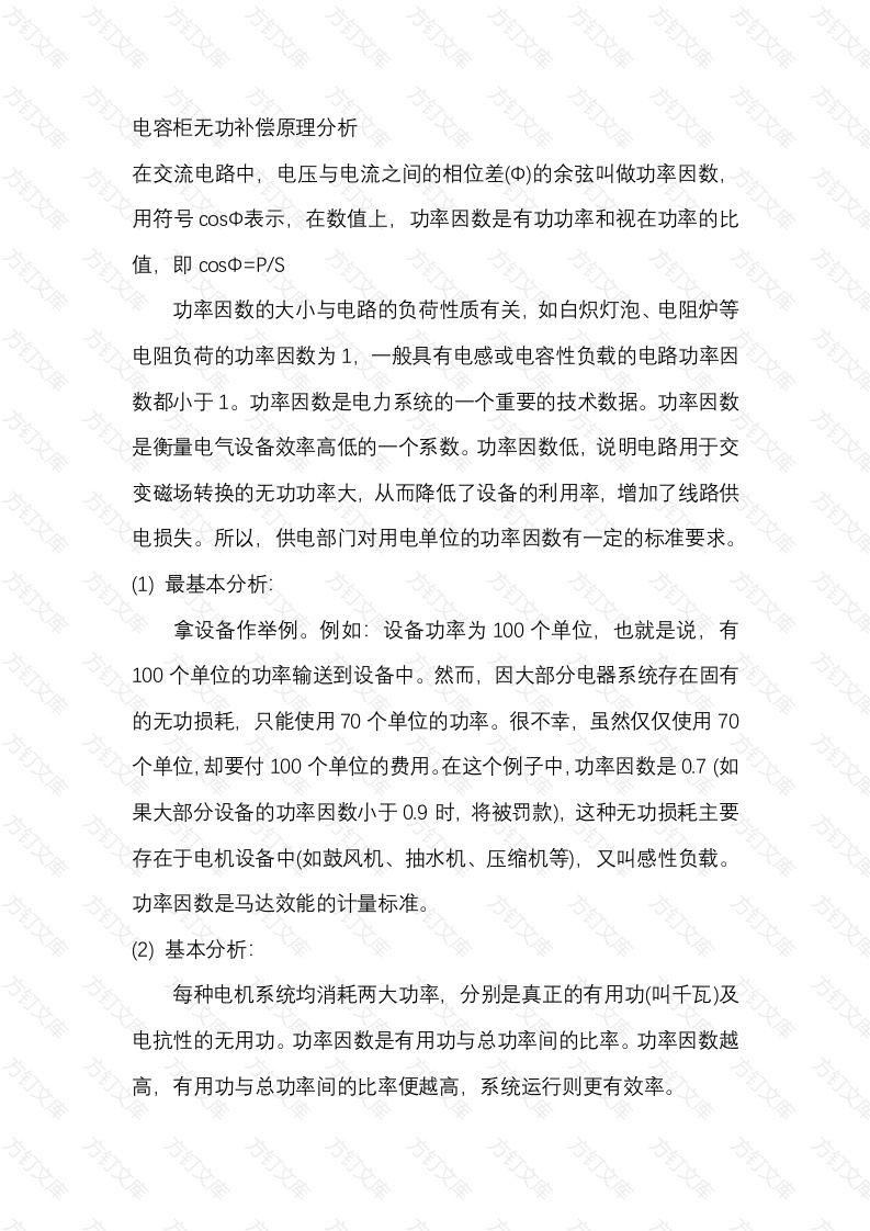 电容柜无功补偿原理分析