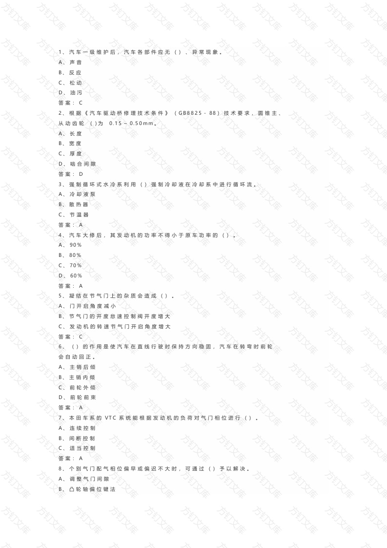 8 中级汽车维修工模拟考试练习题(含答案)-2