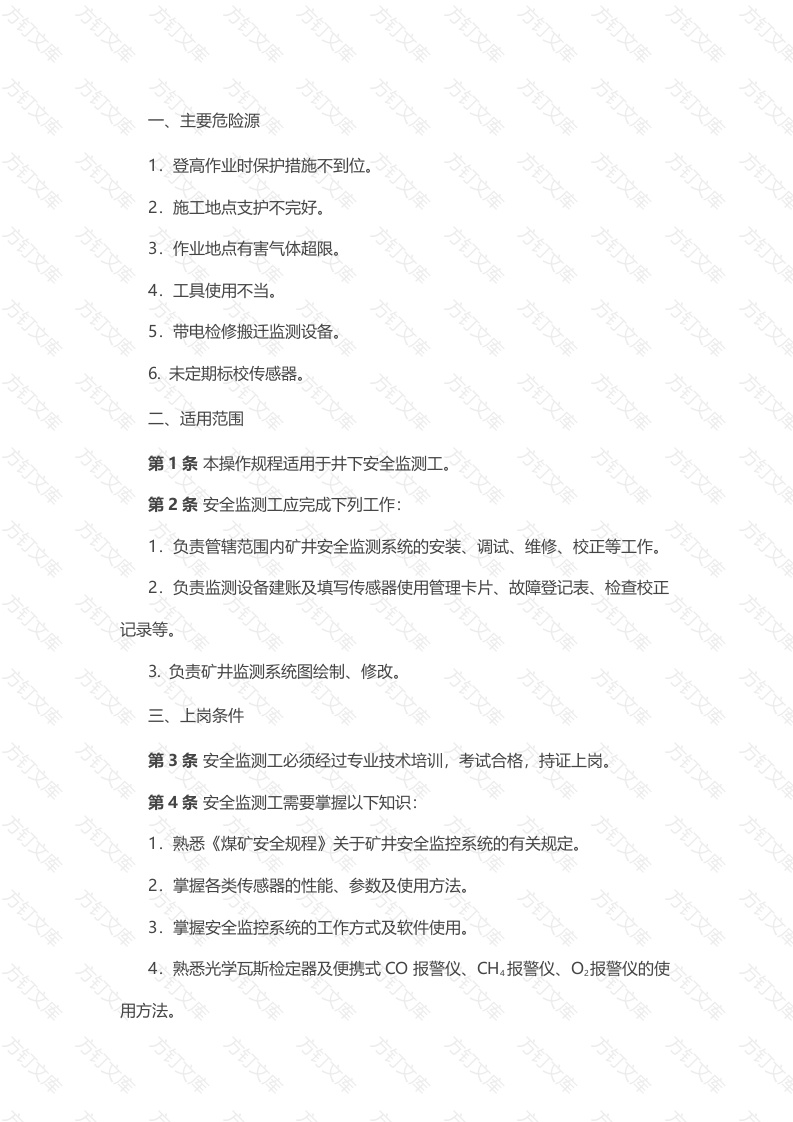 煤矿安全技术操作规程:安全监测工