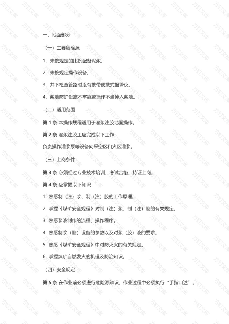 煤矿安全技术操作规程:灌浆注胶工