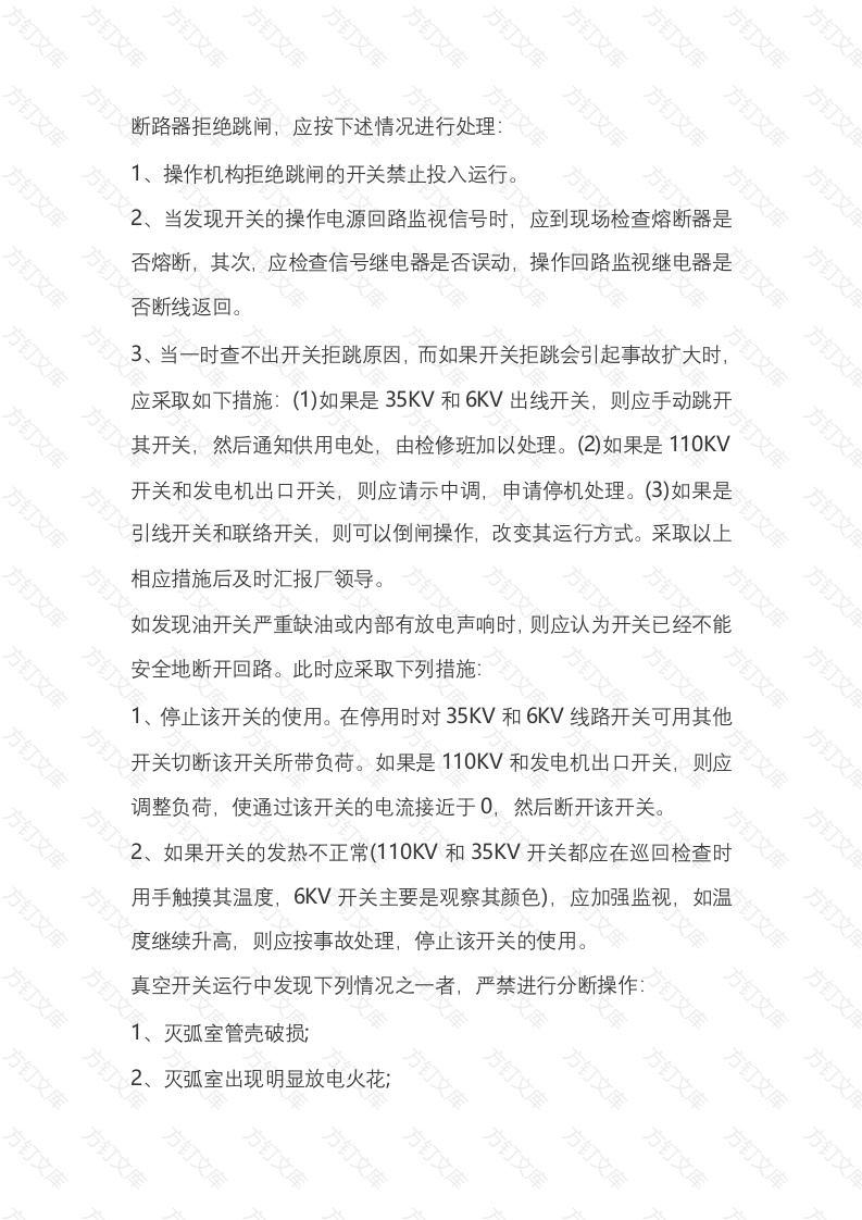 断路器拒绝跳闸故障的处理步骤
