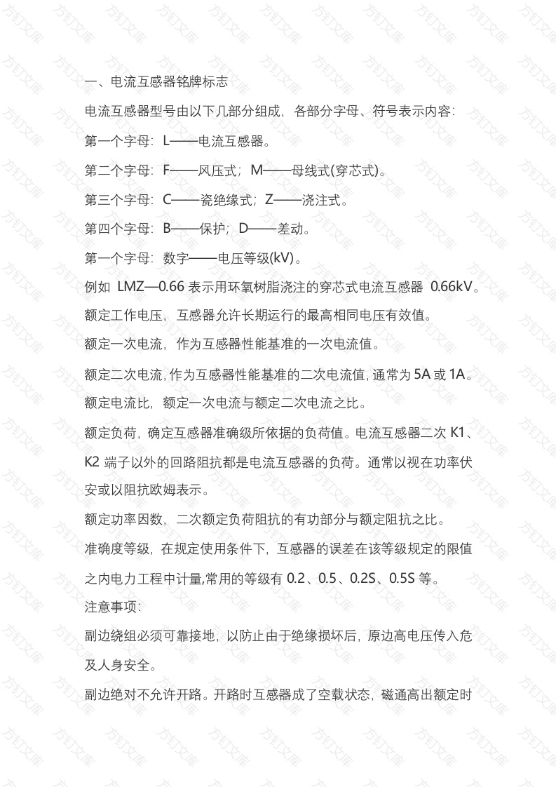 首页公共专业其他电流互感器铭牌标志与精度等级含义