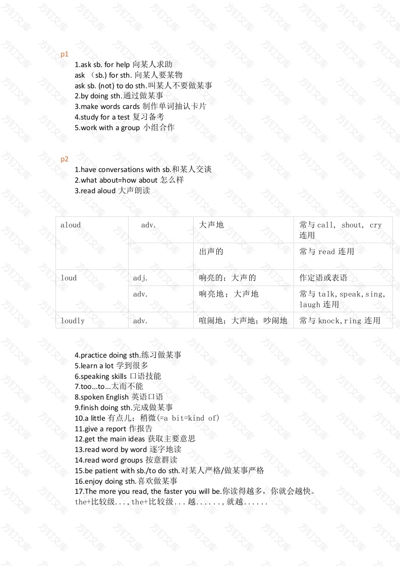 初中九年级英语Unit 1 知识点笔记整理,短语+句型+练习+答案
