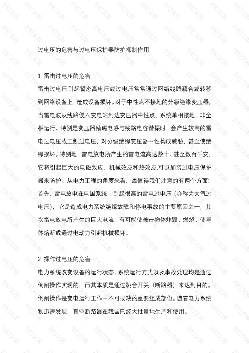 首页公共专业电气专业3 过电压的危害与过电压保护器防护抑制作用
