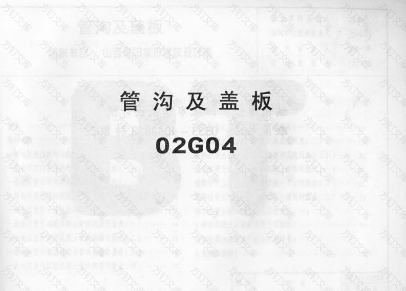 方万管沟及盖板02G04文方文管沟及盖板编制单位负责人编制单位技术负责人编制单位山西省阳泉市建筑设计院技术审定人设计负责人目录目录湿陷性黄士地区室内管询及选用表(一)编制说明8一般地区室内管沟及选用表(无地下水20餐地区室内管沟及选用表(有地10一般地区室外管沟及选用表(无北下水11湿陷性黄土地区室外售为及选用表(一)(砖壁混凝土及钢筋混凝土槽形底)15湿陷性黄土地区室外管沟及选用表(二)一般地区室外钢筋混凝土管沟钢筋用量表(三)(混凝土管沟)·25般地区室外钢筋混凝土管沟钢筋用量表(四)…17图名02G04图集号页次湿陷性黄土地区室外管沟及选用表(三)般地区管为出入口详图42湿陷性地区管肉出入口详图43严寒地区管为出入口详图44湿陷性黄士地区室外钢筋混凝土管沟钢筋用量表(二…28方形伸缩赛管为渠板平面布置图45方形伸缩赛管为选型表46室外管沟检查井盖板及选用表47管沟变形缝详图…31一般地区室外管沟闲门井及选用表(无地下水)48管沟盖版选型及材料表(一)…32一般地区室外管沟阀门井及选用表(有地下水)49管沟盖板选型及材料表(二)湿陷性黄士地区室外管沟阀门井及选用表(一)室内管沟检查井盖板及井盖选用表50室内管沟穿墙大样图一…湿陷性黄士地区室外管沟阀门井及选用表(二)室内管沟字墙过梁及选用表(一)(砖壁钢筋混景土槽形底)·51室内管询穿墙过梁及选用表(二)37湿陷性黄士地区室外管沟阀门井及选用表(三)管沟转角过梁平面布置及节点详图3852室内外管沟角钢转角过梁选用表39湿陷性黄士地区室外管沟阀门井及选用表(四)室外管沟钢筋混凝土转角过栗及选用表4053室内过车管沟做法415402G04图名2