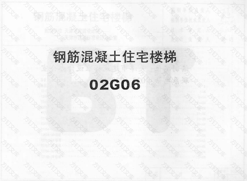 钢筋混凝土住宅楼梯02G06,方编制单位负责人钢筋混凝土住宅楼梯编制单位技术负责人技术审定人万编制单位天津市建筑设计院天津市建筑标准设计办公室库设计负责人钉目录23-815-2021-26T2454-30侵棉T2754-28楼操T2748-28楼号75-80方订图集号02G06图名目录页次1编制说明2.0永久荷载标准值:小瓷砖地面0.55/m2XXX20厚板底是合抹灰0.340.10分项系数:永久荷载分项系数:对由永久荷载嫩应控制的组合取1.35对由可变荷钱效应控制的组合取1.202400,2700六,选用方法进深一4800,.5100.5400层高2800.2900,.30002400开问楼棉仅适用于六层及六层以下的住宅,T2700开问楼梯适用于八层及八层以下的住笔,2600开同楼操可按2700开间楼梯设计,各构件尺寸相应减夕,配进深应)600,楼梯入口处与室外高差为100最大水灰比一0.65最小水泥用量一225kg/m3十一、本图集中所注尺寸单位除楼层标高为m外其他均为mm。02G0图名编制说明页次2374