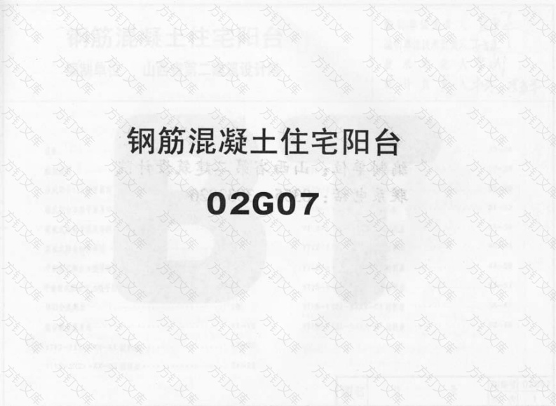 方方钢筋混凝土住宅阳台02G07方方方方订编制单位负责人钢筋混凝土住宅阳台库编制单位山西省第二建筑设计院编制说明YT15-127~28板式阳台1,2型平面图YT15-1板式阳台3型平面及详YT18-1YT12-133~39YT12-14043YT15-1(2)-XXXX-A1平衡板式阳台2,3型平图51~57单阳合选用表10YT15-1(2)-XXX-C1材料表58~61YT18-1(2)-XXXX-B1材料表62~68YT12-1(2-XX-A1材料表17~2021~22图集号02G07图名页次1编制说明2.阳台的净挑长度为1200.1500和1800mm,板式及梁板式阳台2400.2700,3000.3300.3600.3900和4200mm,平衡板式阳台2400.2700.3000.3300.3600.3900.4200和4500mm4本图集未注明的尺寸单位均以mm计。五设计原则库(1)永久荷载标准值①阳台板面层重0.6kN/m2:三设计内容0.4kN/m21。阳台的类型:库2.8kN/m;6.4kN/m.(2)均布活荷载标准值:1代表荷载级别2.5kN/m22代表荷载级别3.5kN/m2.库图名编制说明图集号02G07页次2