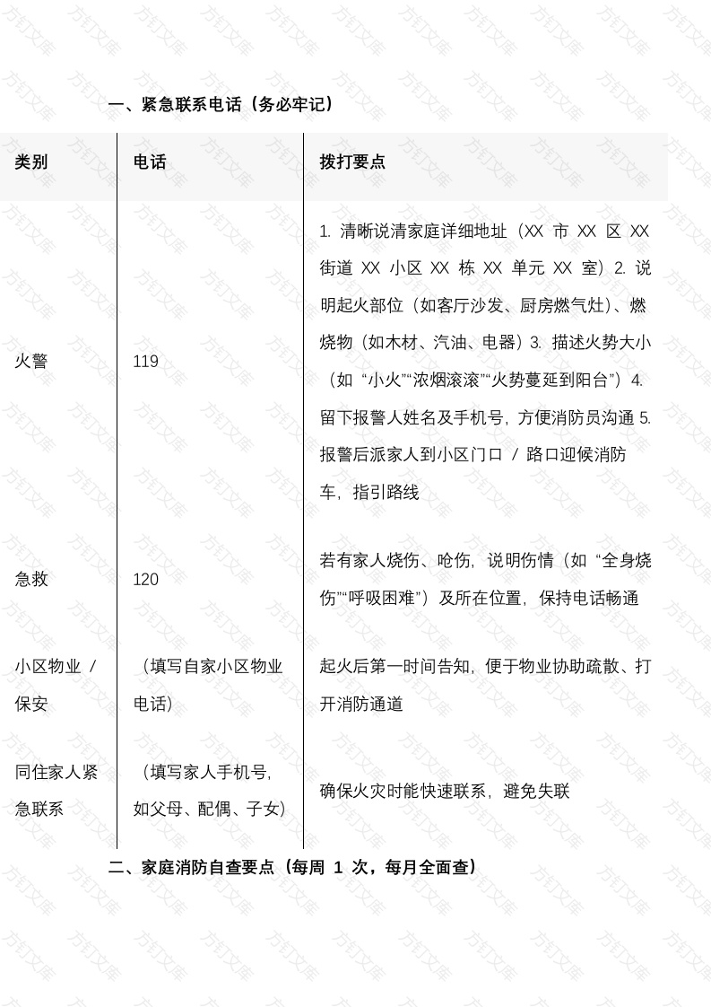 首页公共专业其他4 家庭消防安全应急卡