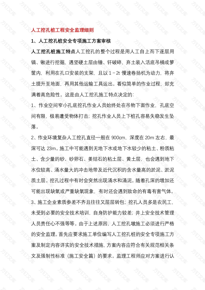 首页公共专业其他6 人工挖孔桩工程安全监理细则