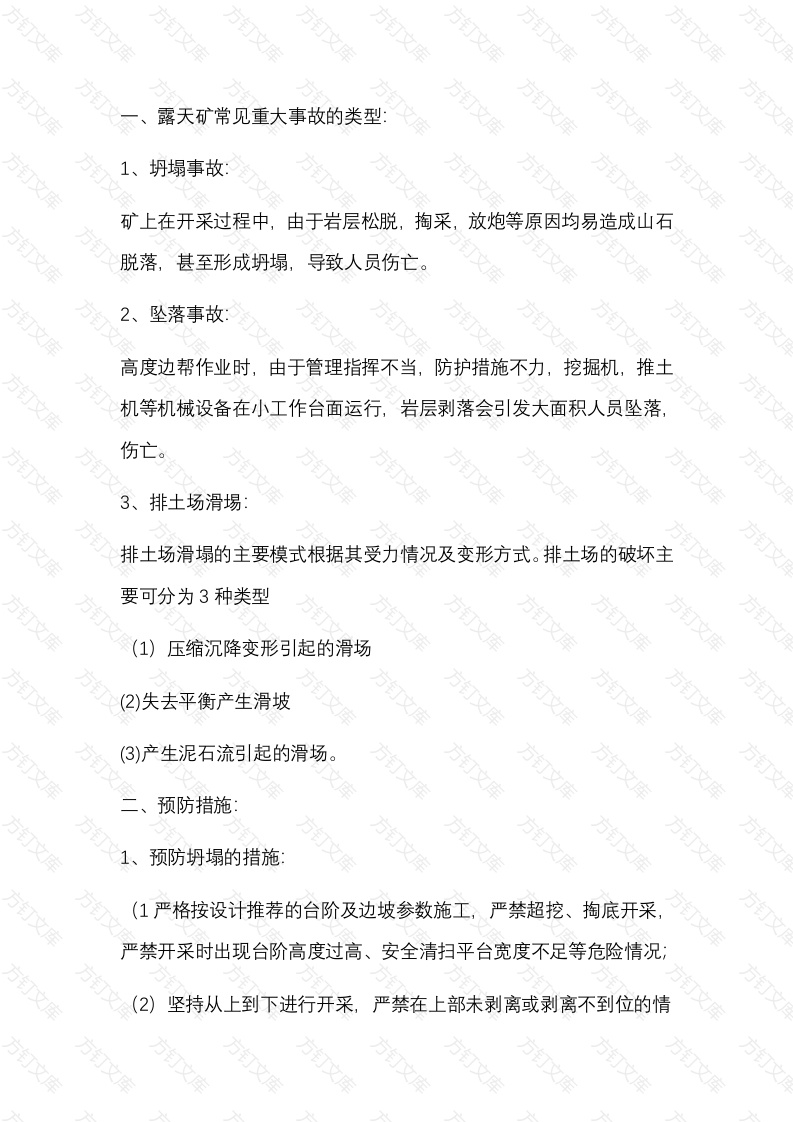 首页公共专业安全露天矿常见重大安全事故的预防措施