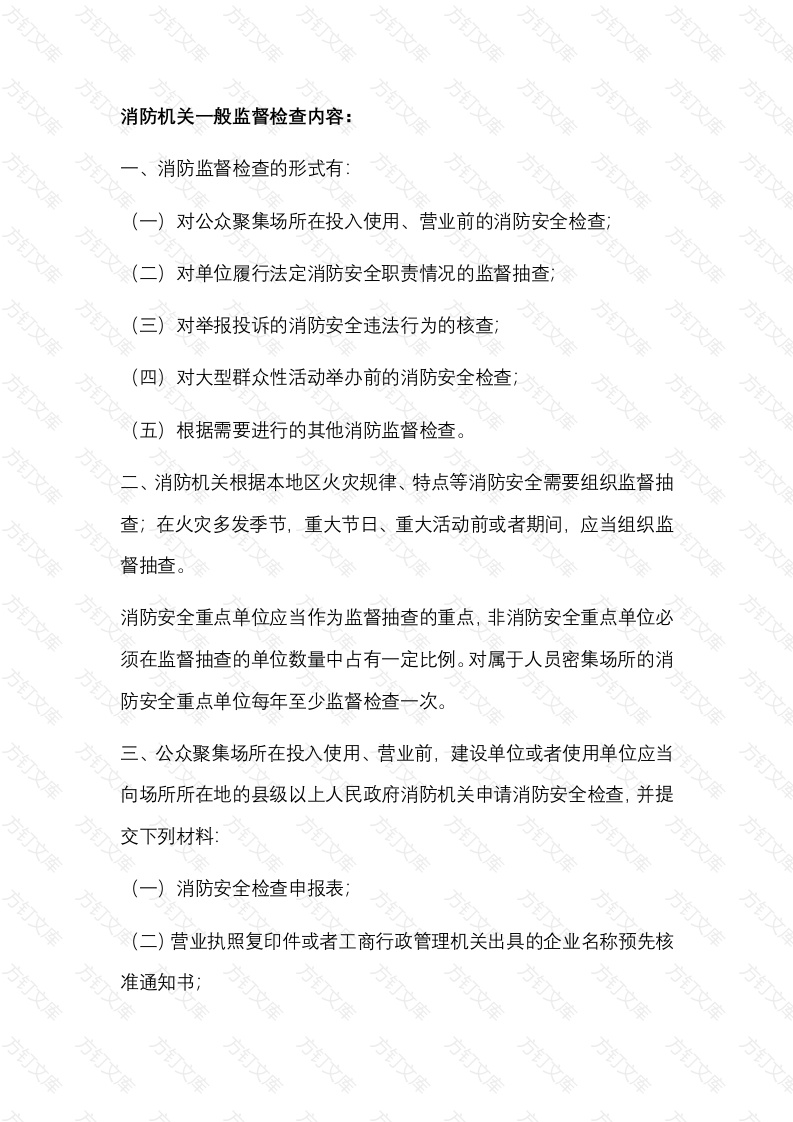 首页公共专业安全消防机关一般监督检查内容