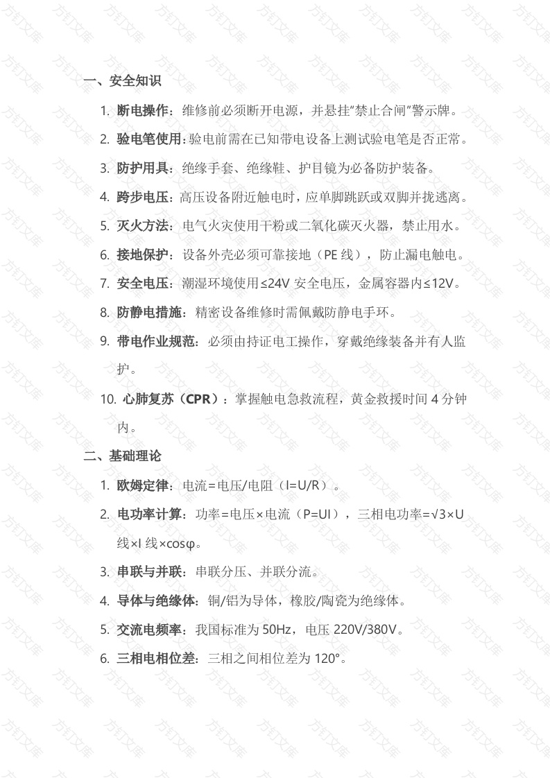 首页公共专业电气专业电工维修必背的 100条核心知识点
