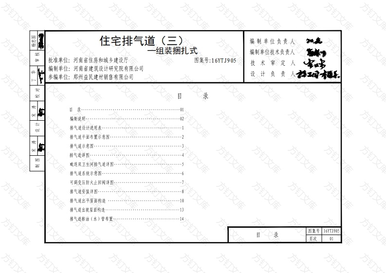 首页公共专业图集16YTJ905组装捆扎式住宅排气道
