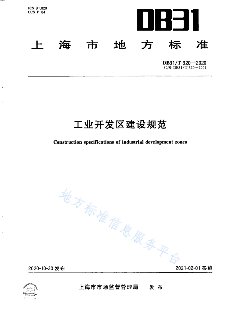CCS P 04上海市方标准DB31/T320-2020代替DB31/T320-2004工业开发区建设规范Construction specifications of industrial development zones地方标准信息服务平台2020-10-30发布021-02-01实施,上海市市场监督管理局发布地方标准信息服务平台DB31/T320一2020次3术语和定义…1241基本要求…4.2新增产业项目25规划布局5.1布局原则…25.2布局要求…261基本要求…6.2用地分类和适建范围…36.3容积率和建筑高度…7区域功能7.1主导型开发区37.2科技创新型开发区……73都市型开发区7,4生产性服务业功能区…7.5产城融合型开发区48基础设施建设……8.1基本要求8.2电力设施8.3燃气设施58.4供热设施58.5供水设施8.7通信设施689消防和防汛除涝设施**69环境建设9.1基本要求