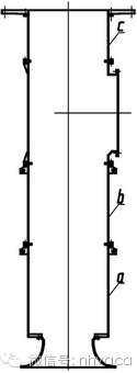 1.4> 最后整体吊起泵壳部件,撤去工字钢或槽钢,清理好安装垫板结合面,放下泵壳体部件,使支撑板就位记下外接管a内凹槽的位置,在泵壳内做标记重点检查:数字相同的壳体选配在同一台泵并且记号均应在同一方向、在泵壳内做出外接管a内凹槽位置标记、吐出口中心线与穿墙管中心线对中。