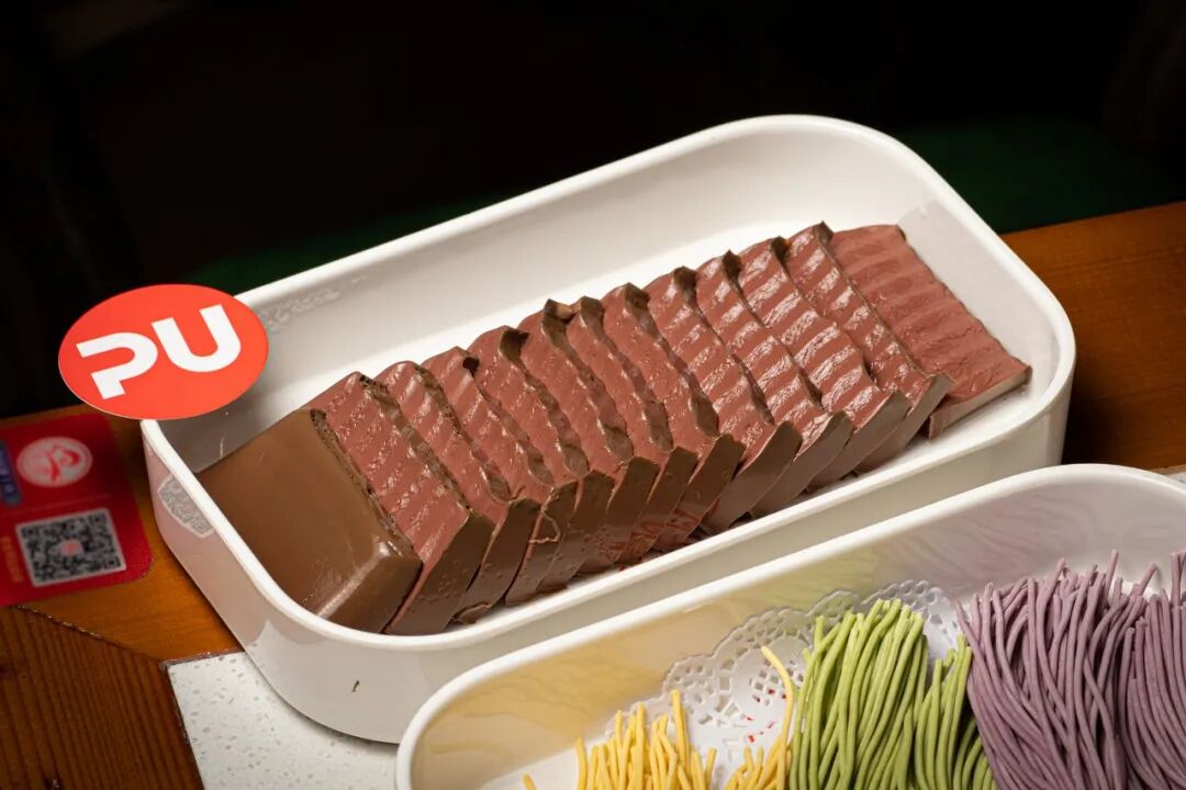 //放进锅里涮,汤汁浸入乌鸡卷中,刺激味蕾和舌尖!肉卷的嫩爽,非常过瘾。蘸上调料,口感一层又一层,爱了~ × 鸭血 ×