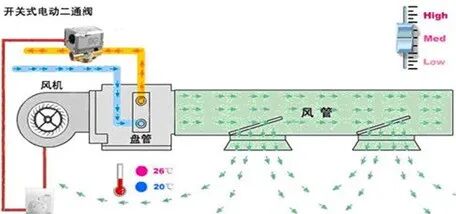 风机盘管控制及工作原理:其工作原理是机组内不断的再循环所在房间的空气,使空气通过冷水(热水)盘管后被冷却(加热),以保持房间温度的恒定。