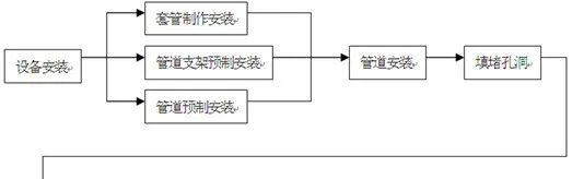 C、无缝钢管:均采用焊接D、给水钢塑复合管道:管径不大于100mm时可采用螺纹连接,管径大于100mm时采用法兰或沟槽连接E:塑料管道:可采用热熔连接、机械锁紧式连接、粘接连接、插接连接水系统安装工艺流程图:。