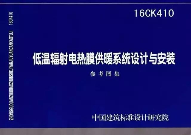 2016年9月20日,中国建筑标准设计研究院颁布实施了16CK410《低温辐射电热膜供暖系统设计与安装》国家建筑标准设计参考图集此图集是在建设部的批准下,由哈尔滨工业大学联合黑龙江中惠地热股份有限公司共同编制的。