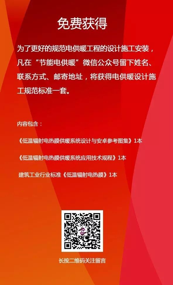 此标准的实施标志着在电热膜供暖系统的设计与安装上有了统一规范具体做法及技术要求;对设计者、施工单位、监理单位及业主方的监管提供了统一的标准、规范、数据及图样标准;是电热膜施工过程中各个阶段参与单位的基本依据;